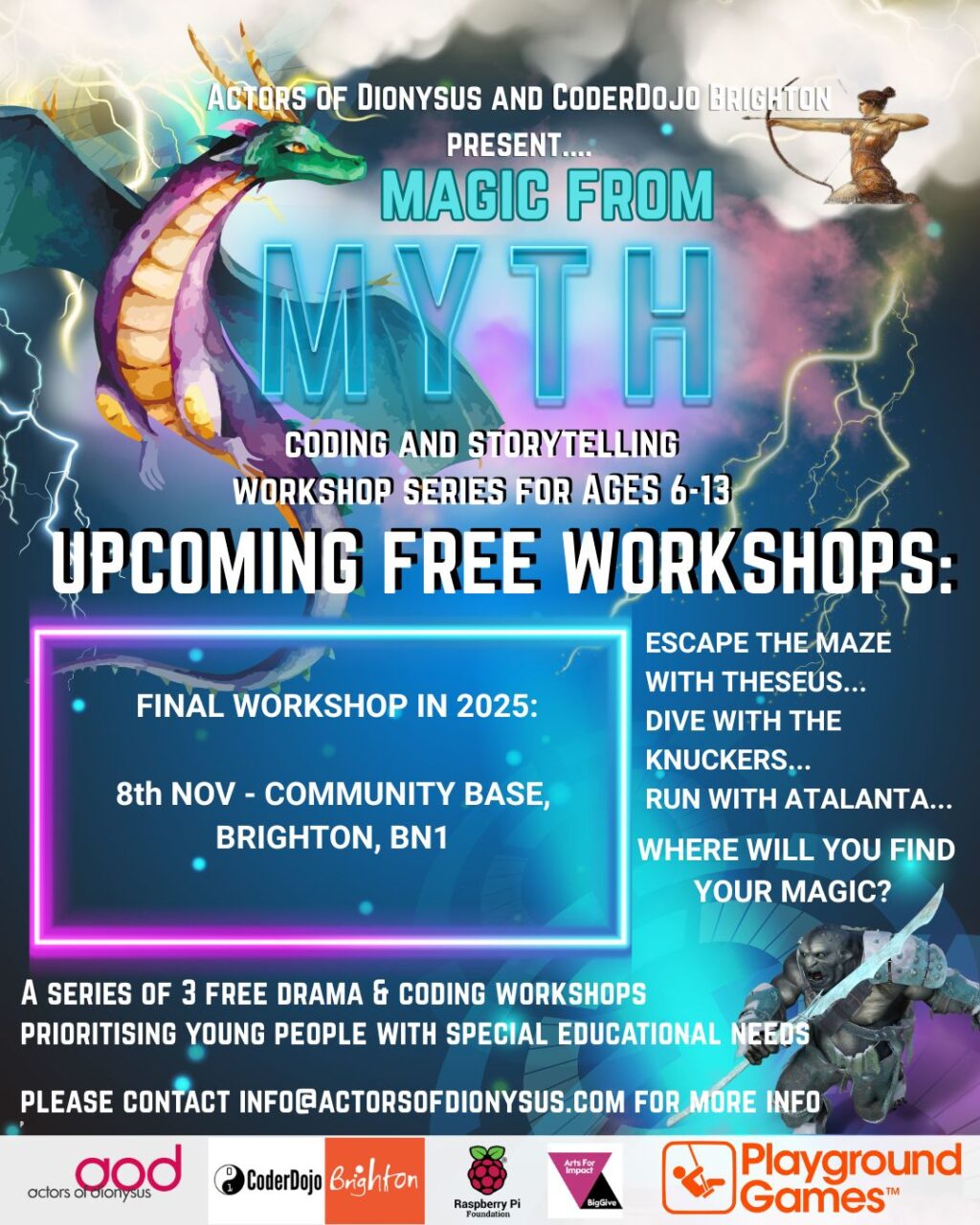 Our final Magic from Myth workshop is this Sat 8th Nov at Community Base in Brighton.